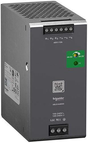 Figure 2: The ABLS1A48050 from the Optimized line delivers 45 VDC at 5 A and supports both AC and DC inputs. (Image source: Schneider Electric)