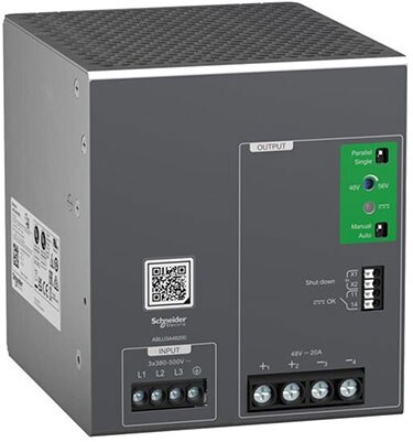 Figure 3: The ABLU3A48200 Universal power supply is designed for three-phase installations from 380 to 500 VAC and delivers 960 watts. (Image source: Schneider Electric)