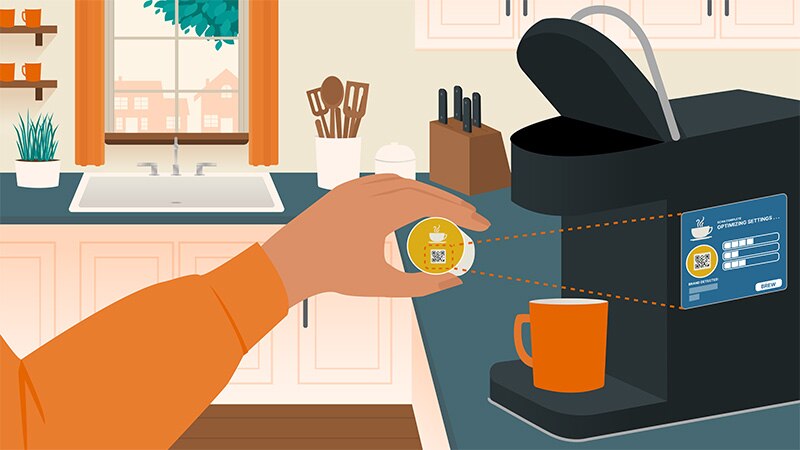 我的一天從智慧咖啡機開始。使用 onsemi 影像感測器讀取咖啡膠囊的 QR 碼,最佳化其沖泡功能,製作出一杯完美的咖啡。