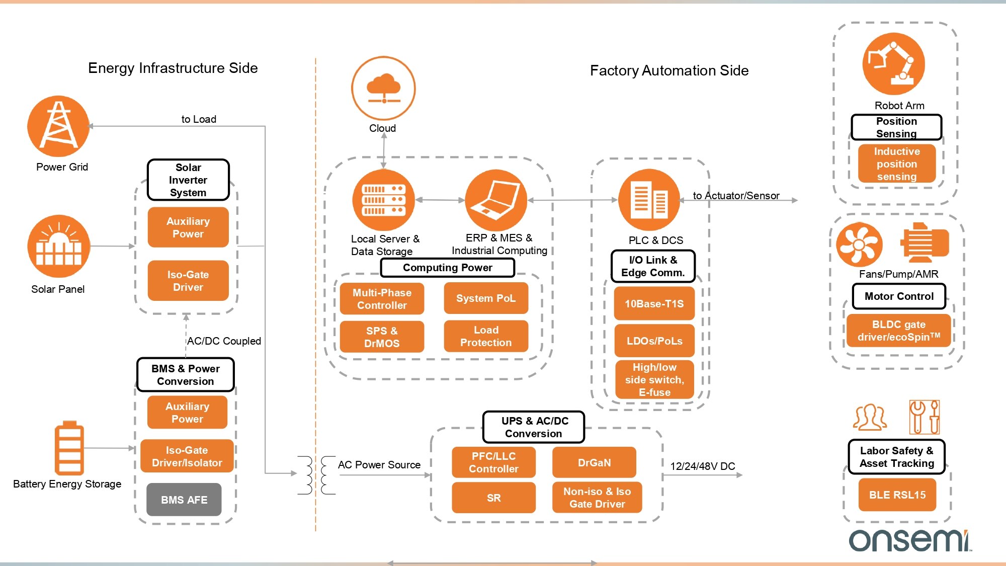 onsemi 正引領下一場工業革命,透過最可靠、最聰明、最節能的技術,推動完全自動化製造環境的快速發展。我們提供高速的智慧感測技術,適用於機器人、掃描、檢測,以及涵蓋各種電壓和技術的最廣泛智慧型電源產品組合,協助 OEM 最佳化生產流程、降低風險並減少營運成本。