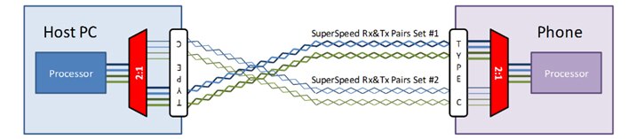轉接驅動器可實現更長的 FR4 走線長度和/或更長的 USB 3.1 Gen 1 或 Gen 2 連接線長度。