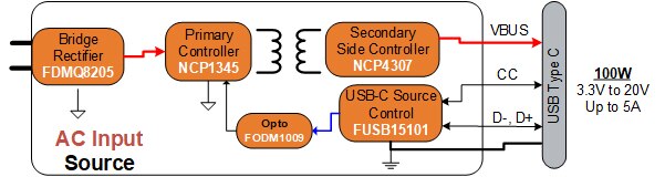 FUSB15101 提供完全自動化且符合規範的 Rev 2.0 Type-C 和 Rev 3.0 電力傳輸解決方案,並支援 PPS (可編程電源) 功能,適用於 DC-DC、AC-DC 電源,能提供可自訂的電力配置,最大功率可達 100 W (5 V/20 A)。