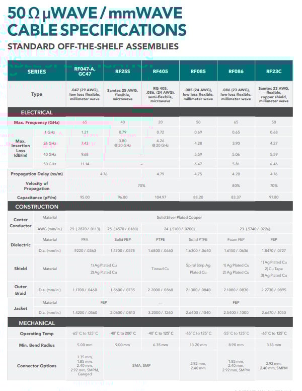 如需高達 110 Ghz 的更高頻率,請造訪我們的精密 RF 頁面。