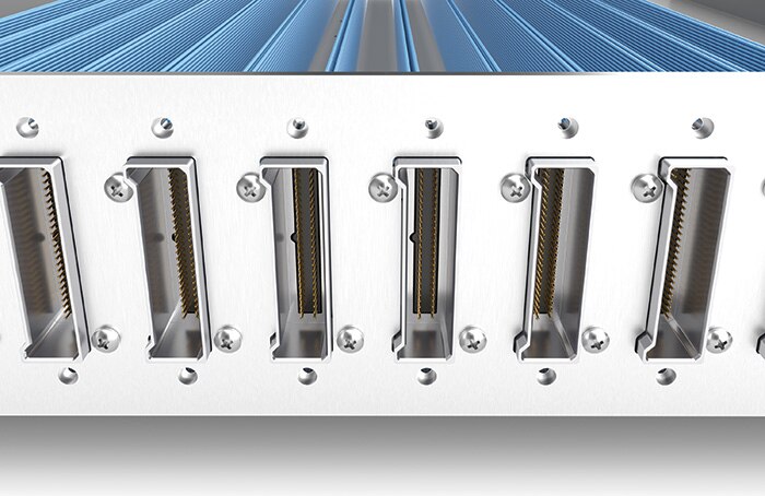URSA® I/O 採用雙曲面型觸點,可在超耐用型應用中達到極高的可靠性和高插拔次數,並具備 EMI 保護。