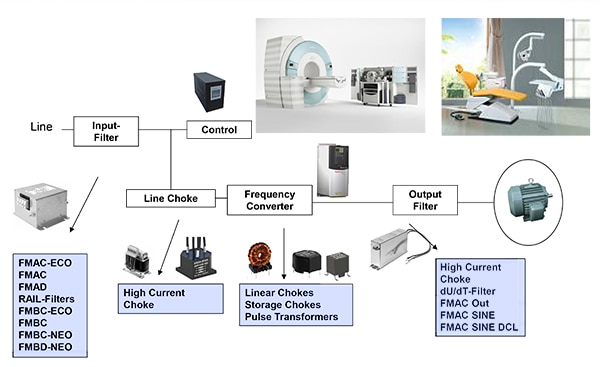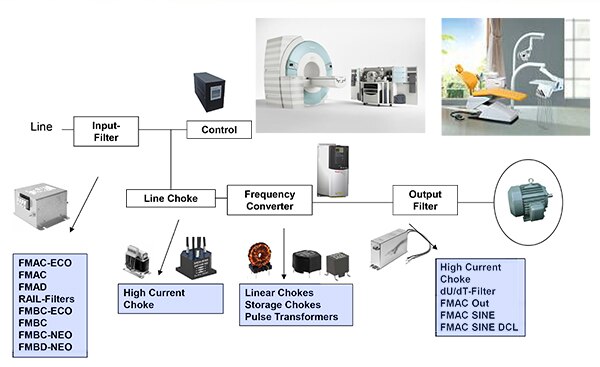 SCHURTER 擁有多種電流補償、線性、儲能、飽和、接地、高電流扼流圈。特點包括: