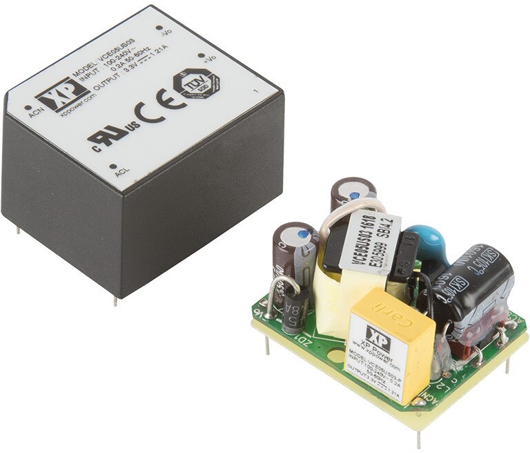 XP Power 的 VCE03、VCE05 和 VCE10 具有超小型尺寸,大小僅 1.60" x 0.75" x 0.75" 起,並可透過 PCB 引腳安裝在密封式或開放式封裝中。這些低成本電源供應器皆符合 60950-1 和 62368-1 (ITE),以及 60335-1 (家用) 安全認證 (3 W 和 10 W 版本),並符合傳導與輻射排放標準 B 類 EMC 標準。