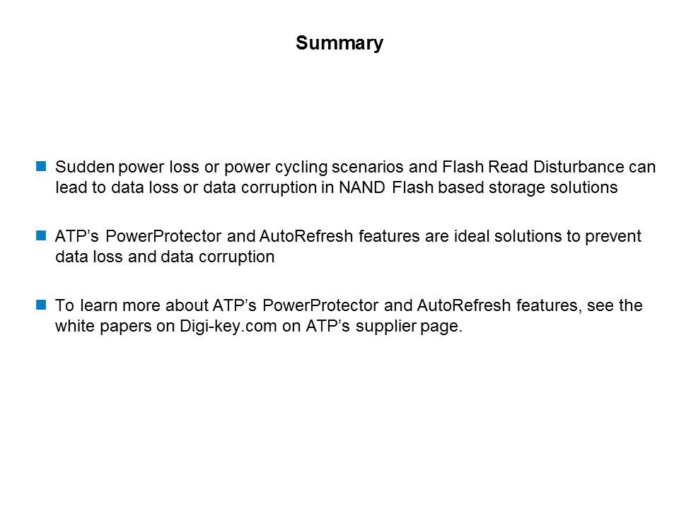 In summary, ATP’s PowerProtector and AutoRefresh features are ideal solutions to prevent data loss and data corruption in applications operating in extreme environments and where frequent reads occur. Engineers and designers have to consider potential data loss and data corruption when designing solutions for applications operating in harsh and extreme environments where power loss or power cycling can occur. Read disturbance errors also need to be considered in read intensive applications. To learn more about ATP’s PowerProtector and AutoRefresh features see the white papers on DigiKey.com on ATP’s supplier page.