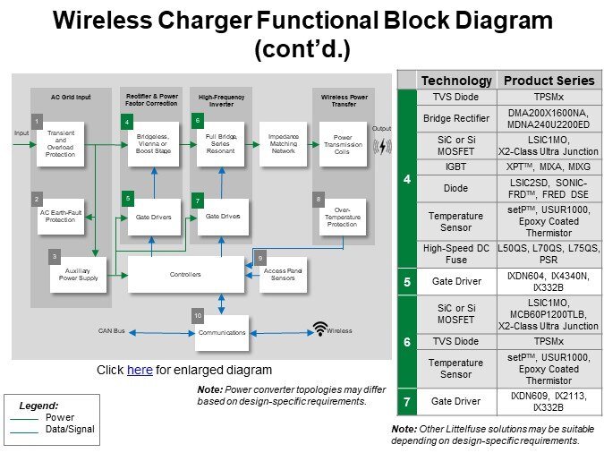 At the power rectification and high-frequency inverter stages, DigiKey offers Littelfuse technologies ranging from fuses and rectifiers to TVS diodes and silicon-carbide MOSFETs.