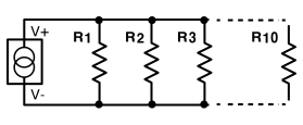 此工具可針對多達 10 個並聯連接至電流源的電阻,計算流經其各個電阻的電流。